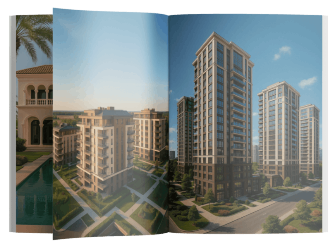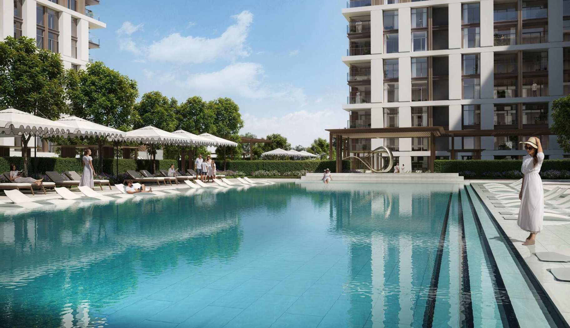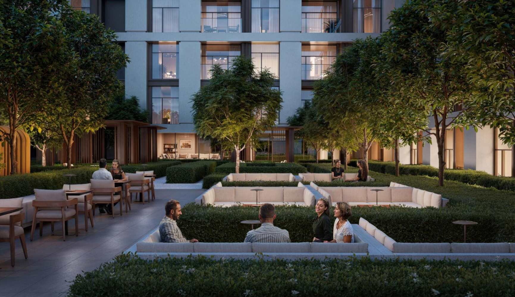 Комплекс гармонично сочетает в себе элегантную архитектуру, тихие внутренние дворики и общественные пространства, которые способствуют сильному чувству общности среди жителей